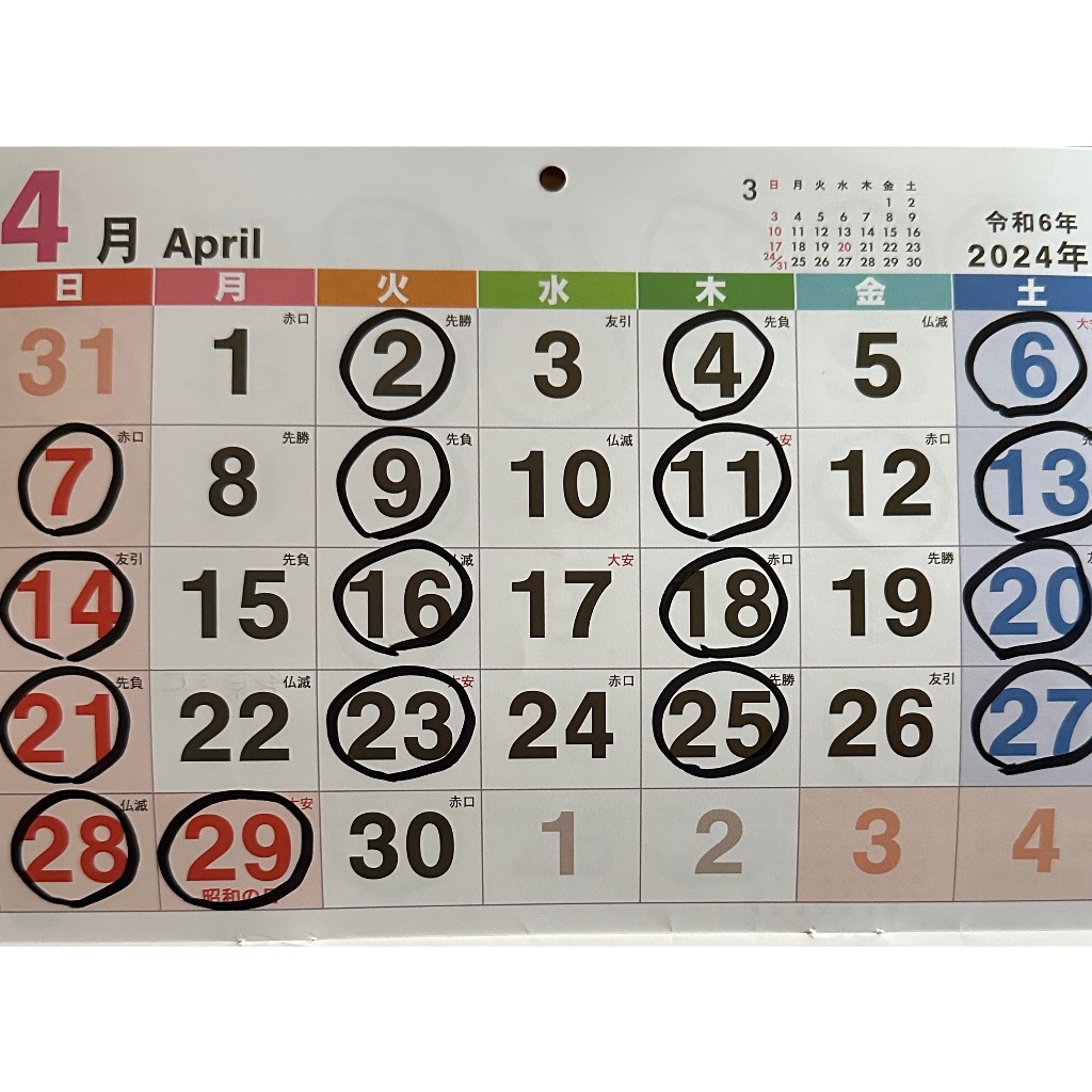 25月⇨お休み