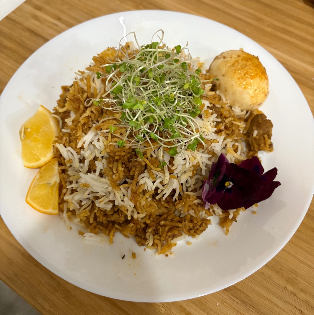 温かい炊きたてのビリヤニを店内で